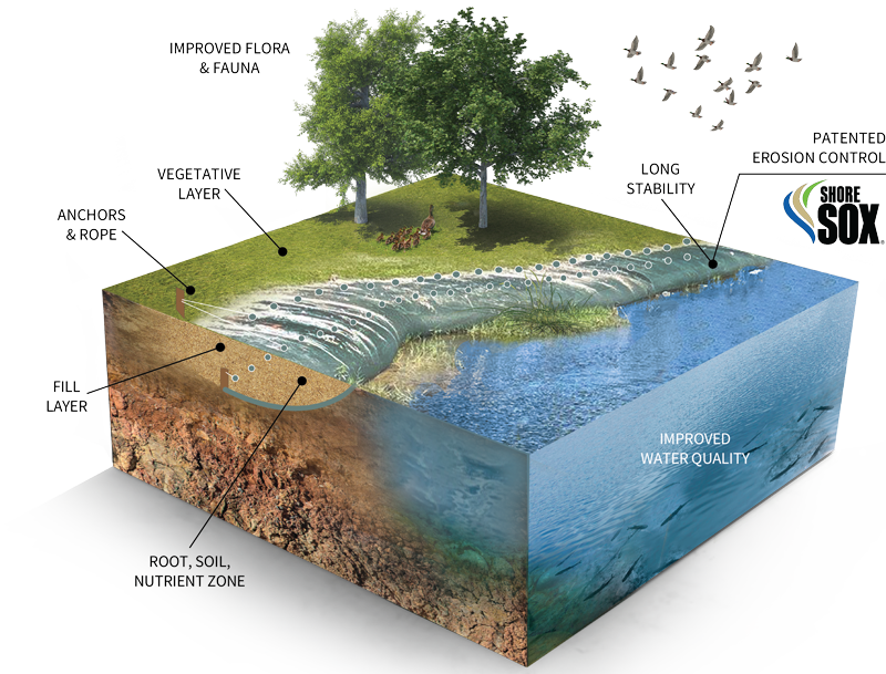 Through our partnership with SOX Erosion Solutions™, we install proven living shoreline and stabilization systems that reduce erosion, protect waterways, and extend the lifespan of turf and landscaped areas.